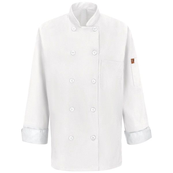 Forget about stains and motion restriction with our Women's Ten Button Chef Coat with MIMIX™ and OilBlok. It comes with strategically placed MIMIX™ stretch panels for enhanced mobility and maximum range of motion while performance mesh improves breathability. This chef coat is packed with features like OilBlok technology to repel liquids such as cooking oil and keep stains from forming so you look professional the entire day. It also has superior color rentention and wickability. This is the only women's chef coat like this on the market!.