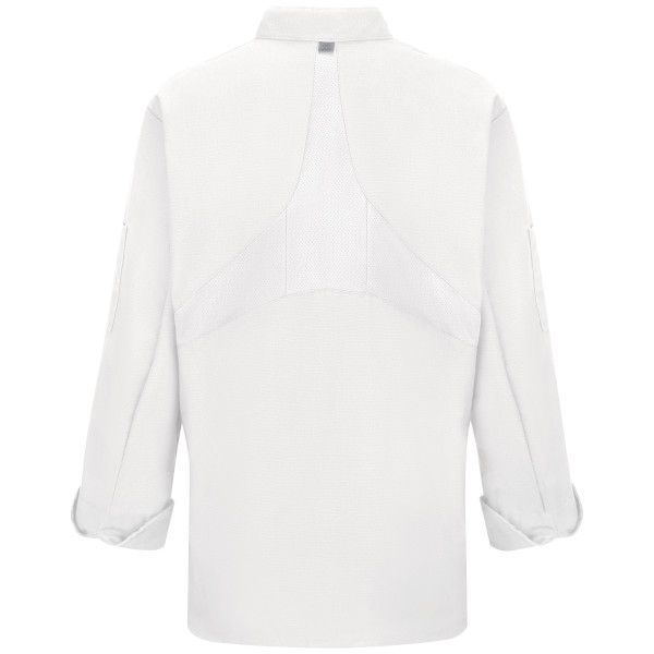 Forget about stains and motion restriction with our Women's Ten Button Chef Coat with MIMIX™ and OilBlok. It comes with strategically placed MIMIX™ stretch panels for enhanced mobility and maximum range of motion while performance mesh improves breathability. This chef coat is packed with features like OilBlok technology to repel liquids such as cooking oil and keep stains from forming so you look professional the entire day. It also has superior color rentention and wickability. This is the only women's chef coat like this on the market!.