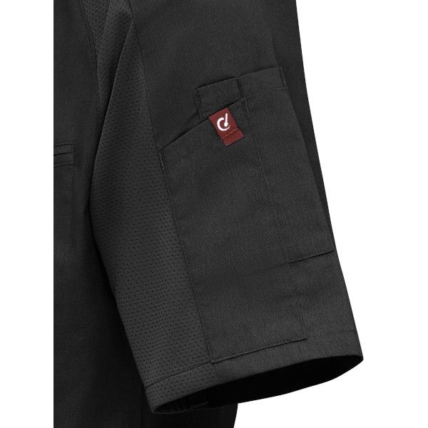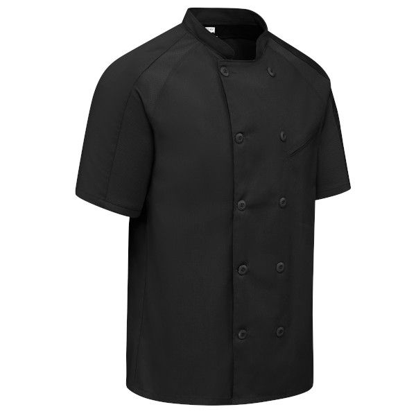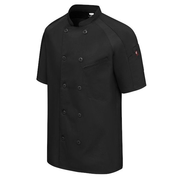 Our men’s Airflow Raglan Chef Coat with lightweight mesh back and underarm panels knows how to keep its cool in a kitchen. The OilBlok finish keeps stains under control, and you’ll always have go-to kitchen gadgets within arm’s reach thanks to a handy chest and dual sleeve pocket. Available in five stylish colors and a classic fit that works well with all body types. It’s sure to be a fav!.