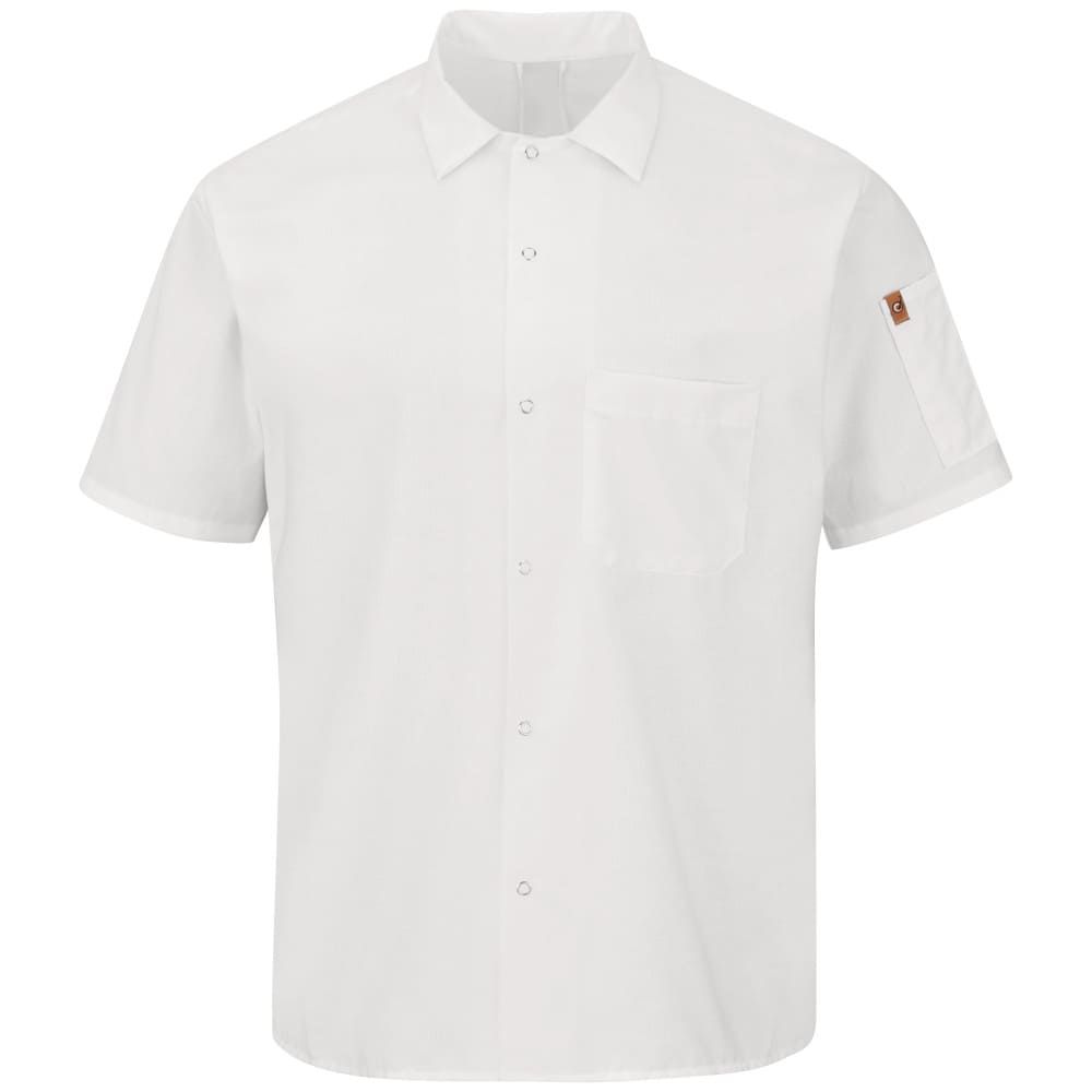 Home > Shop by Brands > Chef Designs > Chef & Cook Shirts > 502XWH Men's White Short Sleeve Cook Shirt With OilBlok + MIMIX