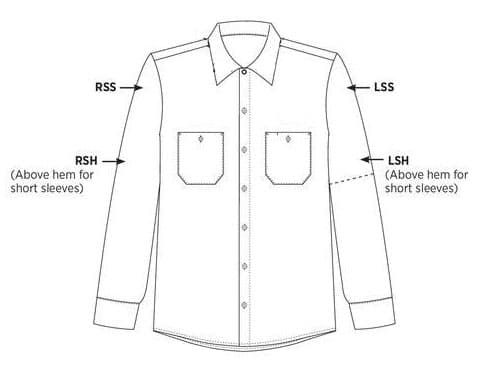 On a short sleeve, the sleeve embroidery is placed 1” from the bottom seam and is used for a full logo, logo icon, or text. This design or text can be up to 3.5” x 3.5” but is typically 1”- 2”. The embroidery on a long sleeve shirt is typically reserved for a logo icon and is placed 3 to 4” down from the top seam.