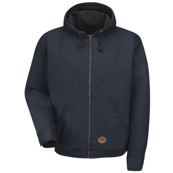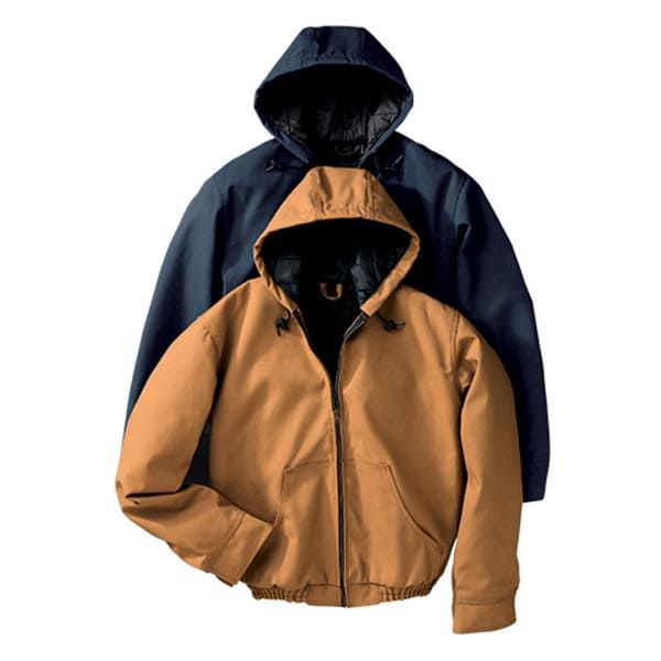 With hand warmer pockets, a quilted and insulated liner, and a durable duck blend made to resist stains and wick sweat, this jacket will keep you warm all year long. Its gored sleeves allow you to move freely while the adjustable cuffs, waistband, and hood keep the cold out.