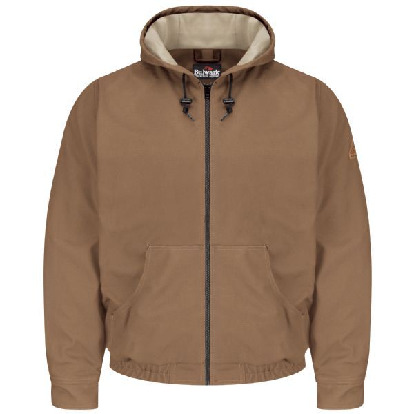 This heavyweight CAT 3 AR/FR brown duck jacket is designed with special features to keep you warm and safe in the field, like water-repellent fabric that keeps you dry in wet weather and a three-piece hood for extra warmth when you need it.