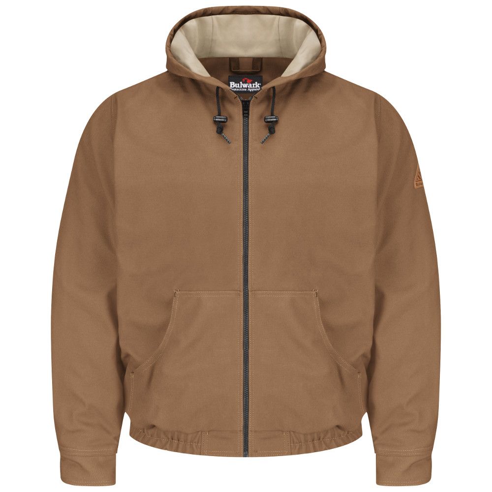 This heavyweight CAT 3 AR/FR brown duck jacket is designed with special features to keep you warm and safe in the field, like water-repellent fabric that keeps you dry in wet weather and a three-piece hood for extra warmth when you need it.