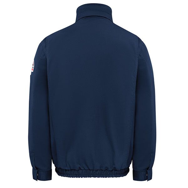 This lightweight CAT 3 bomber-style jacket is fully lined to keep you warm and safe in the field. Featuring separating, heavy-duty Nomex® taped brass zipper, fully covered with updated collar and storm flap construction. Updated cuff. Two external patch pockets, with concealed snap secured flaps with hand warmers. Inside chest pocket. Left sleeve pocket. Utility loops at shoulder. Deep-pleated action back. Elasticized waistband. DWR - Durable Water Repellent.