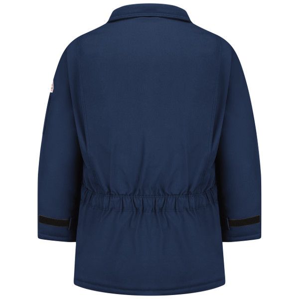 This heavyweight CAT 3 AR/FR parka is insulated to provide warmth and FR protection without excess weight. Plus, water-repellent fabric keeps you dry in wet weather, while elastic inserts at waist across back allow for greater mobility.