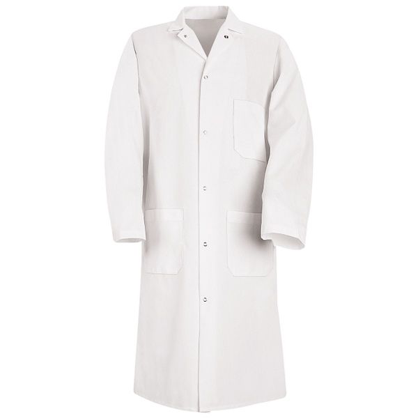 With its six-gripper front and 100% polyester construction, our Gripper-Front Spun Polyester Butcher Coat is built to handle anything you come across on the job. It comes with three exterior pockets, one chest and two lower, to keep your essential items close. There are also side vents to help keep you cool throughout the day.