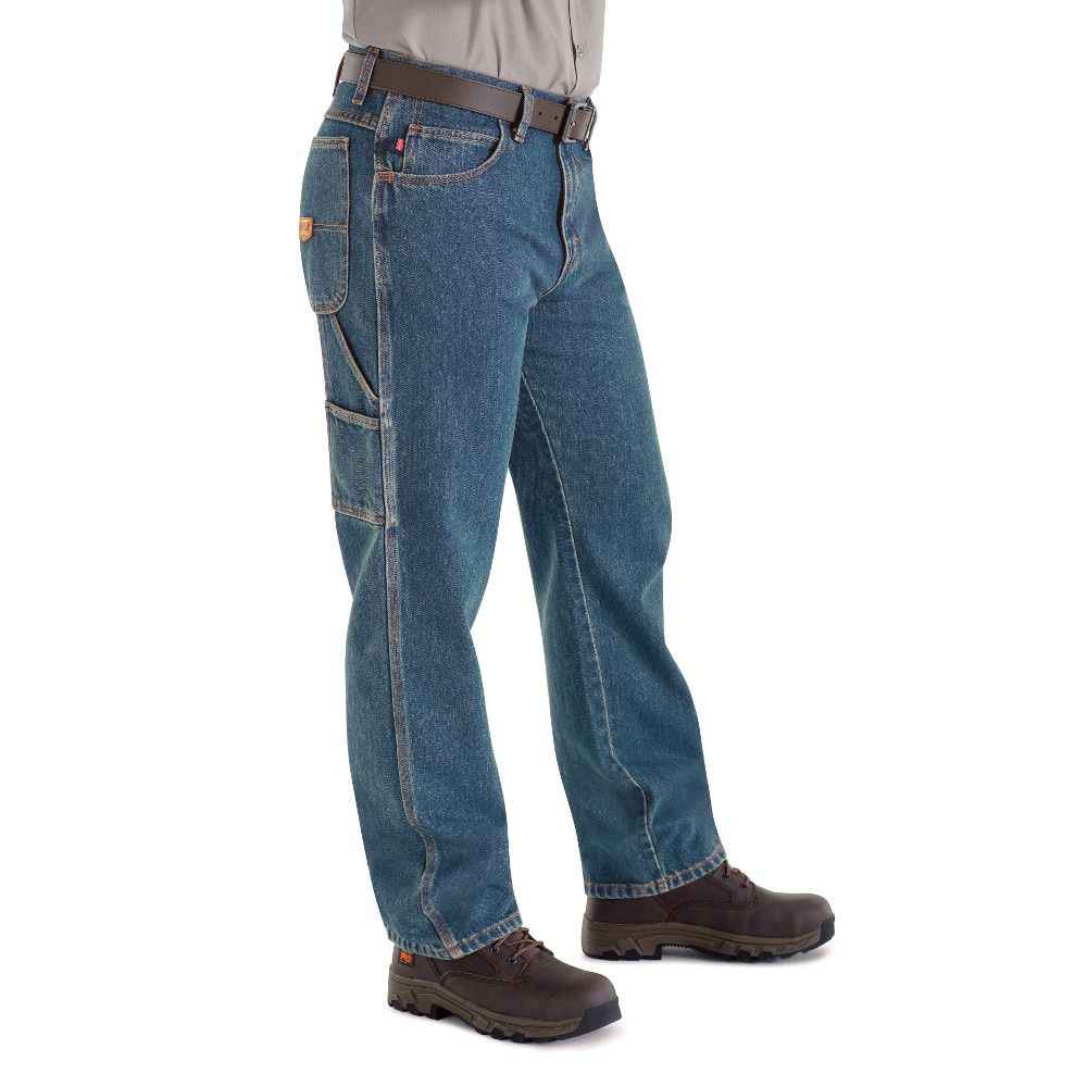 Pockets: Two deep scoop front pockets, two oversize hip pockets, double rule pocket on right leg, hammer loop on left leg.