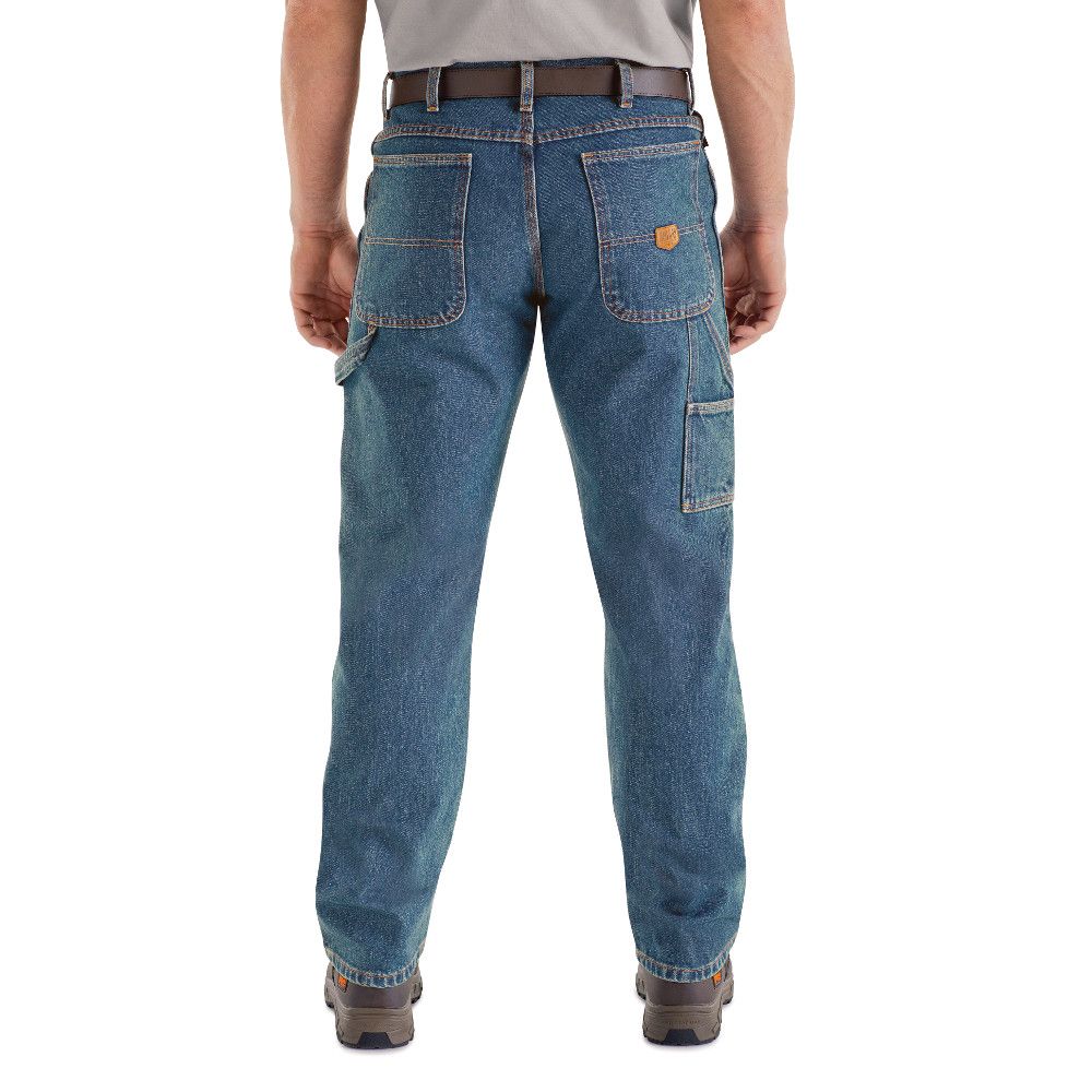 Pockets: Two deep scoop front pockets, two oversize hip pockets, double rule pocket on right leg, hammer loop on left leg.