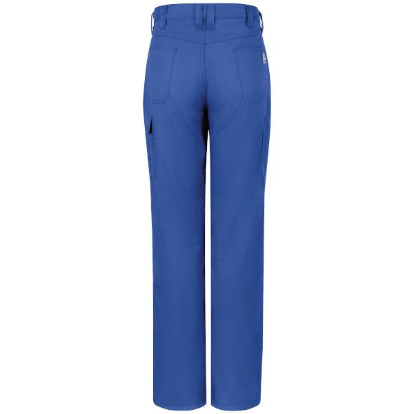 One-piece waistband with concealed button closure > Two scoop front pockets, concealed pocket on right pocket bag > Two hip patch pockets > Full crotch gusset > Utility loop extension on front belt loop > Cargo pocket with snap closures on left leg > Double utility pocket on right leg > Double articulated knees.