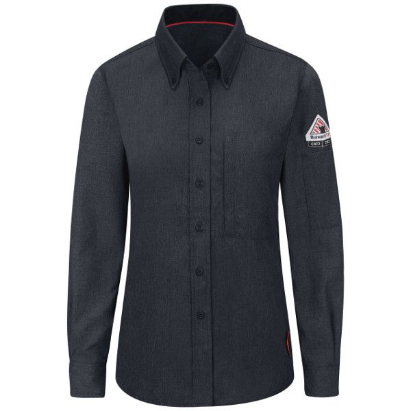 The newest advance in women's FR workwear. Workwear that's actually designed for a woman's body. Made exclusively from TenCate Evolv™, this FR button-front shirt features mobility panels across the back and full arm gussets for increased movement and comfort. Princess seaming gives this shirt a uniquely feminine fit and shape, with hidden pockets on each sleeve and exterior 2112 labels clearly visible.