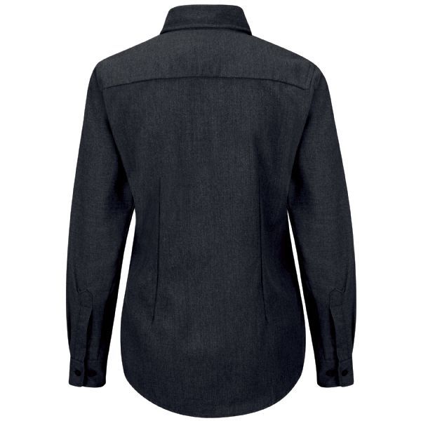 The newest advance in women's FR workwear. Workwear that's actually designed for a woman's body. Made exclusively from TenCate Evolv™, this FR button-front shirt features mobility panels across the back and full arm gussets for increased movement and comfort. Princess seaming gives this shirt a uniquely feminine fit and shape, with hidden pockets on each sleeve and exterior 2112 labels clearly visible.