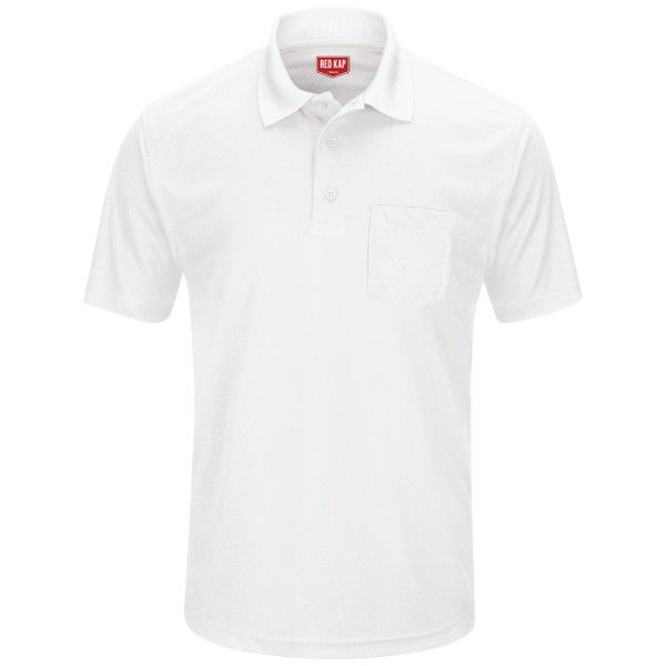 Home > Shop by Brands > Red Kap > Shirts by Red Kap > Red Kap Polo Shirts > Pocket / Knit Polo > SK98WH Men's White Short Sleeve Performance Knit Pocket Polo