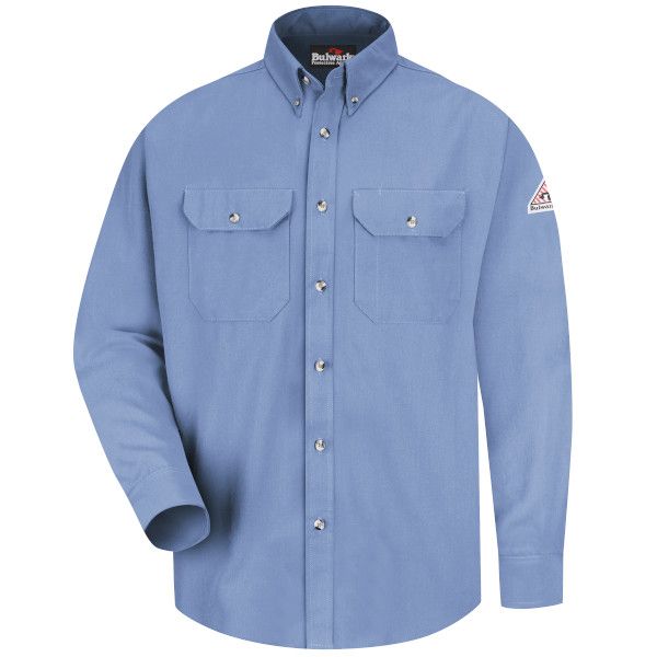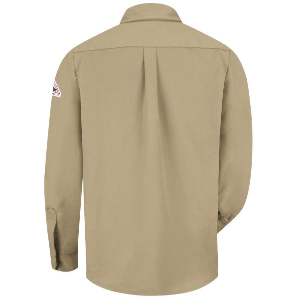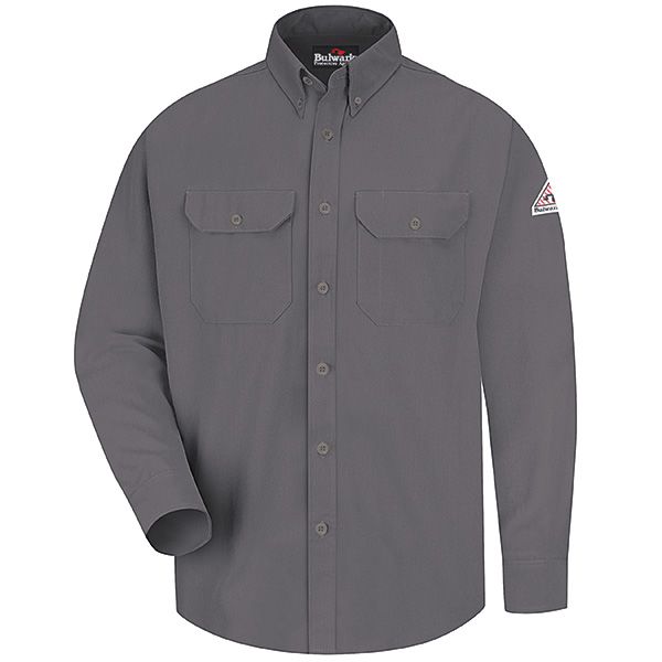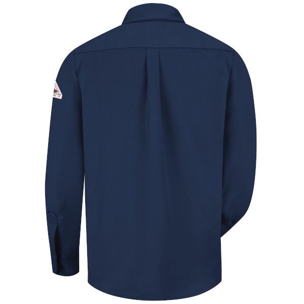 This midweight FR dress uniform shirt offers a tailored, professional look with CAT 2 AR/FR protection and NFPA® 2112 compliance, plus underarm gussets for increased ease of movement.
