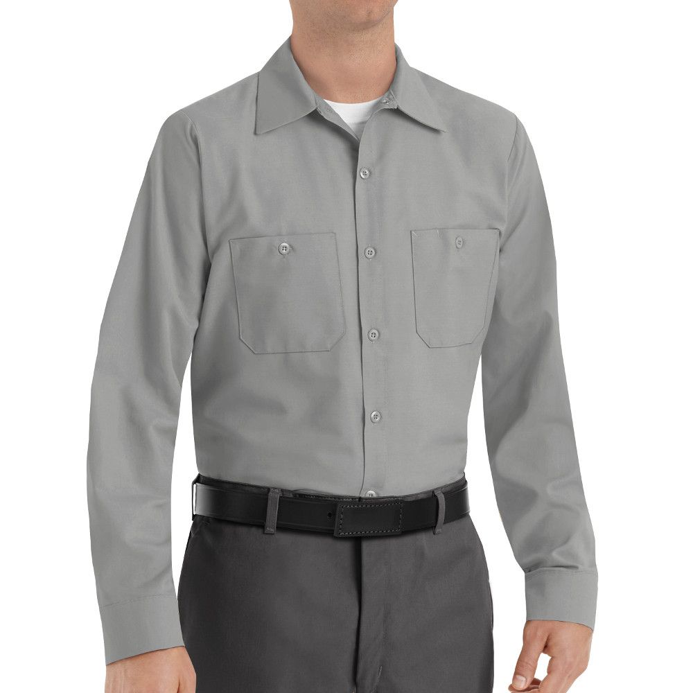 Men's Light Grey Long Sleeve Industrial Work Shirt