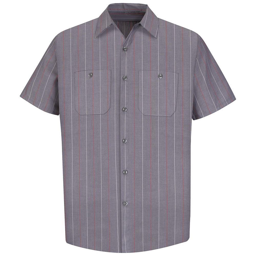 SP24CR Short Sleeve Charcoal/Red/White Stripe Industrial Work Shirt