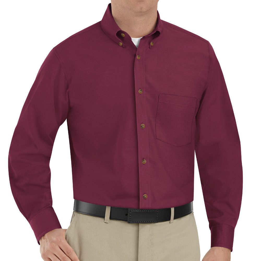 Men's Burgundy Long Sleeve Button Down Poplin Shirts