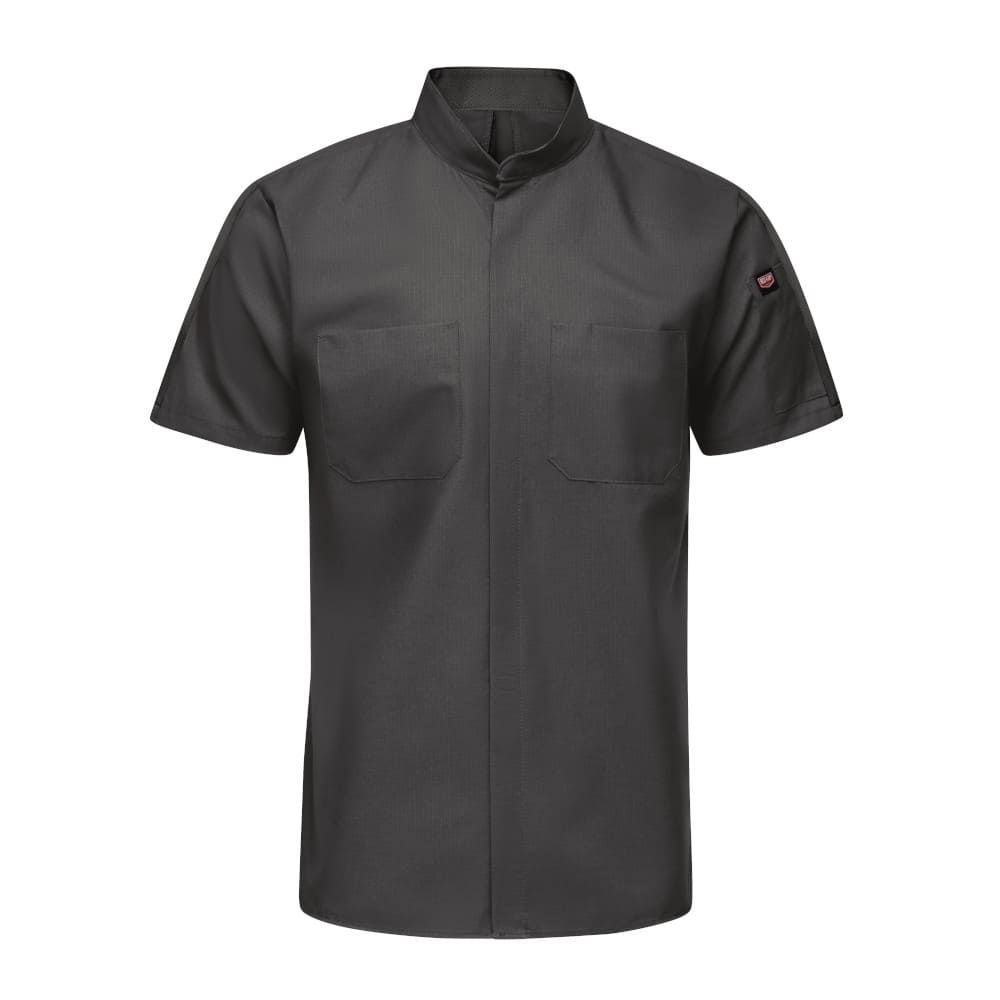 The back mesh flex panel and underarm gussets enhance appearance and improve mobility and breathability. Ripstop is lightweight but ultra-durable and offers superior color retention, plus soil release while wicking sweat away from the body during sweaty shifts. Covered snaps keep paint jobs protected and offer a professional appearance.