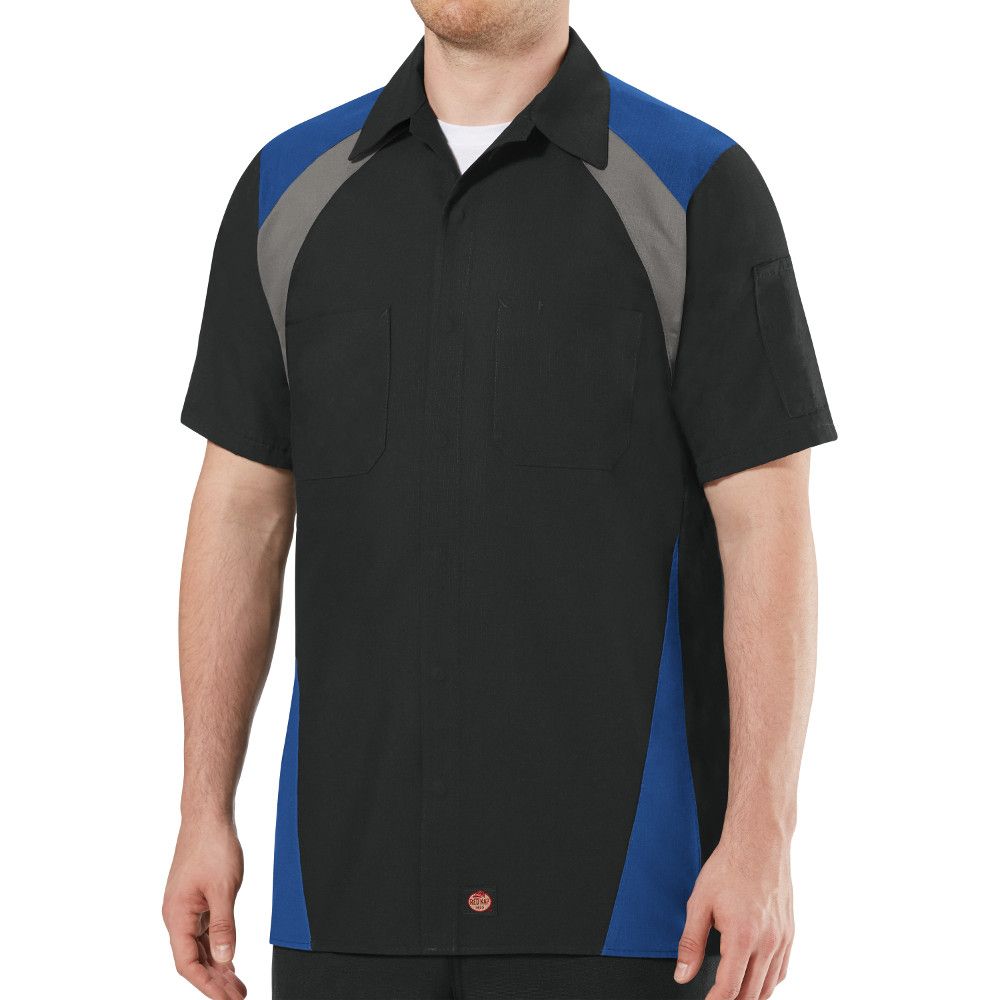 Home > Shop by Brands > Red Kap > Shirts by Red Kap > Mechanic Work Shirts > Tri-Color Shop Shirt Short Sleeve Black/Grey/Royal SY28RB