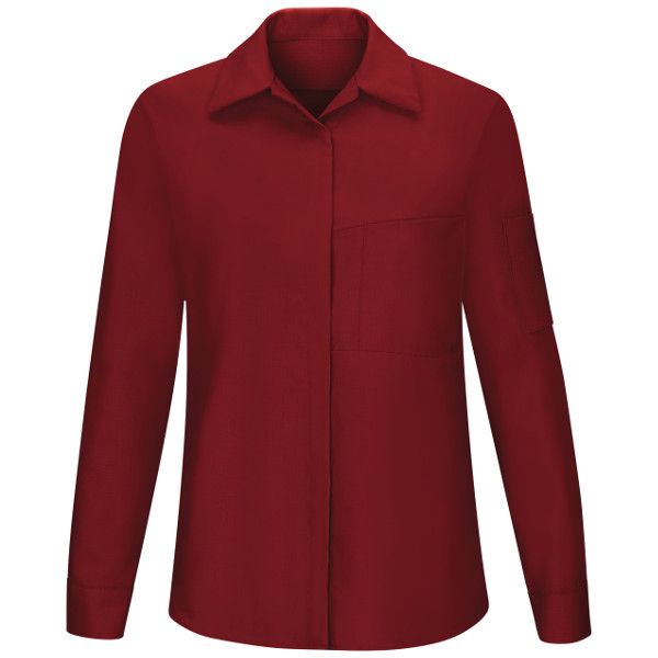SY31FC Women's Long Sleeve Fireball Red/Charcoal Mesh Performance Plus Shop Shirt with OilBlok Technology