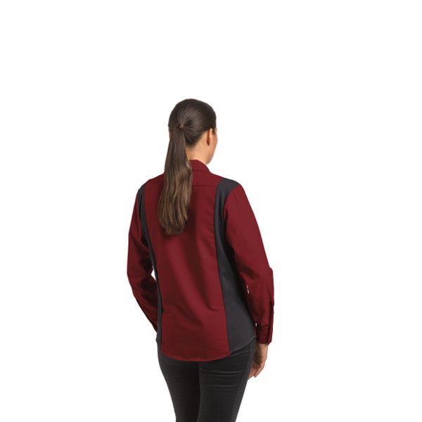 Women's Long Sleeve Fireball Red/Charcoal Mesh Performance Plus Shop Shirt with OilBlok Technology