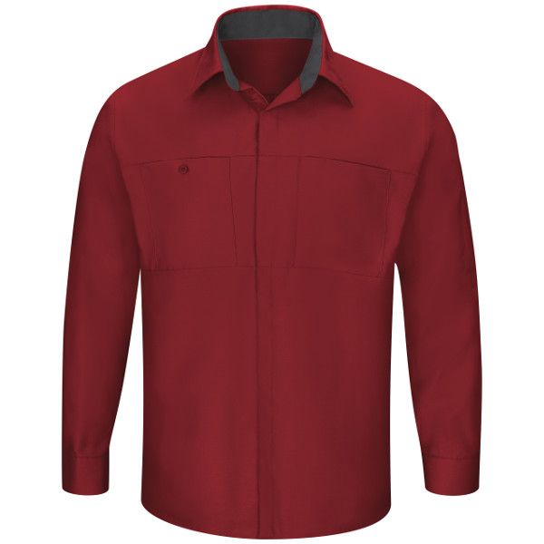 SY32FC Men's Long Sleeve Fireball/Charcoal Red Performance Plus Shop Shirt with OilBlok Technology