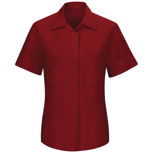 Women's Short Sleeve Fireball Red/Charcoal Mesh Performance Plus Shop Shirt with OilBlok Technology