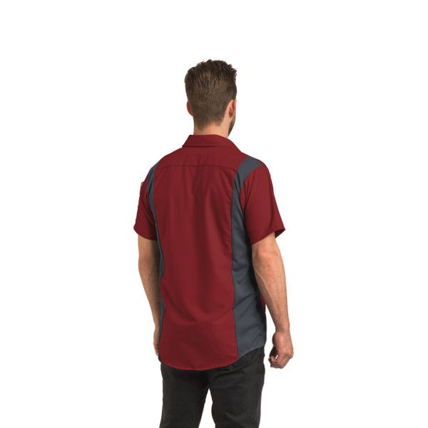 Home > Shop by Brands > Red Kap > Shirts by Red Kap > Mechanic Work Shirts > SY42FC Men's Short Sleeve Fireball Red/Charcaol Mesh Performance Plus Shop Shirt with OilBlok Technology