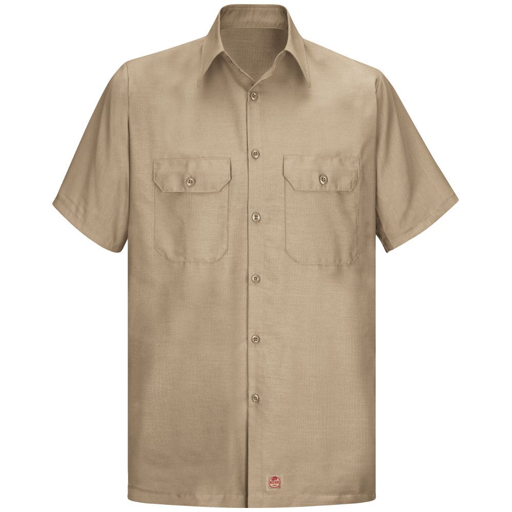 Men's Khaki Solid Ripstop Work Shirt - Short Sleeve